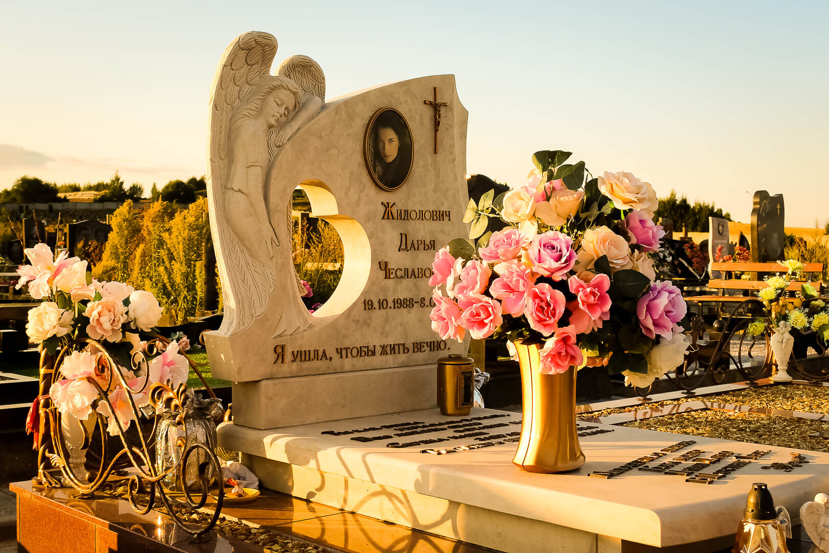 Очень важный момент, касающийся практичности: любой аксессуар на памятник часто повреждается – в большинстве случаев по вине клиента, но достоинством вазы из бронзы является их сборность и возможность заменить составляющий элемент, тогда как цельное изделие из камня восстановлению уже не подлежит.