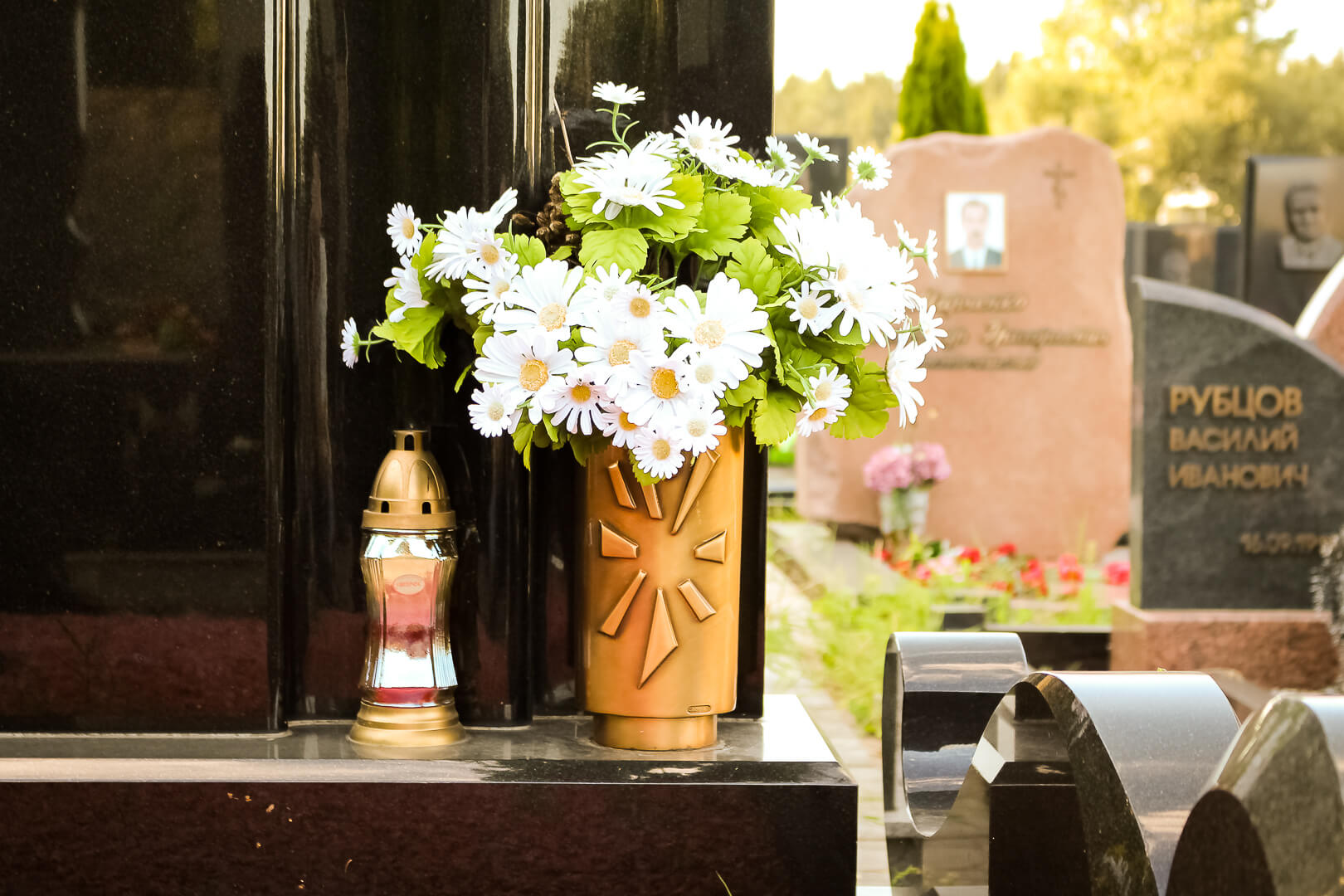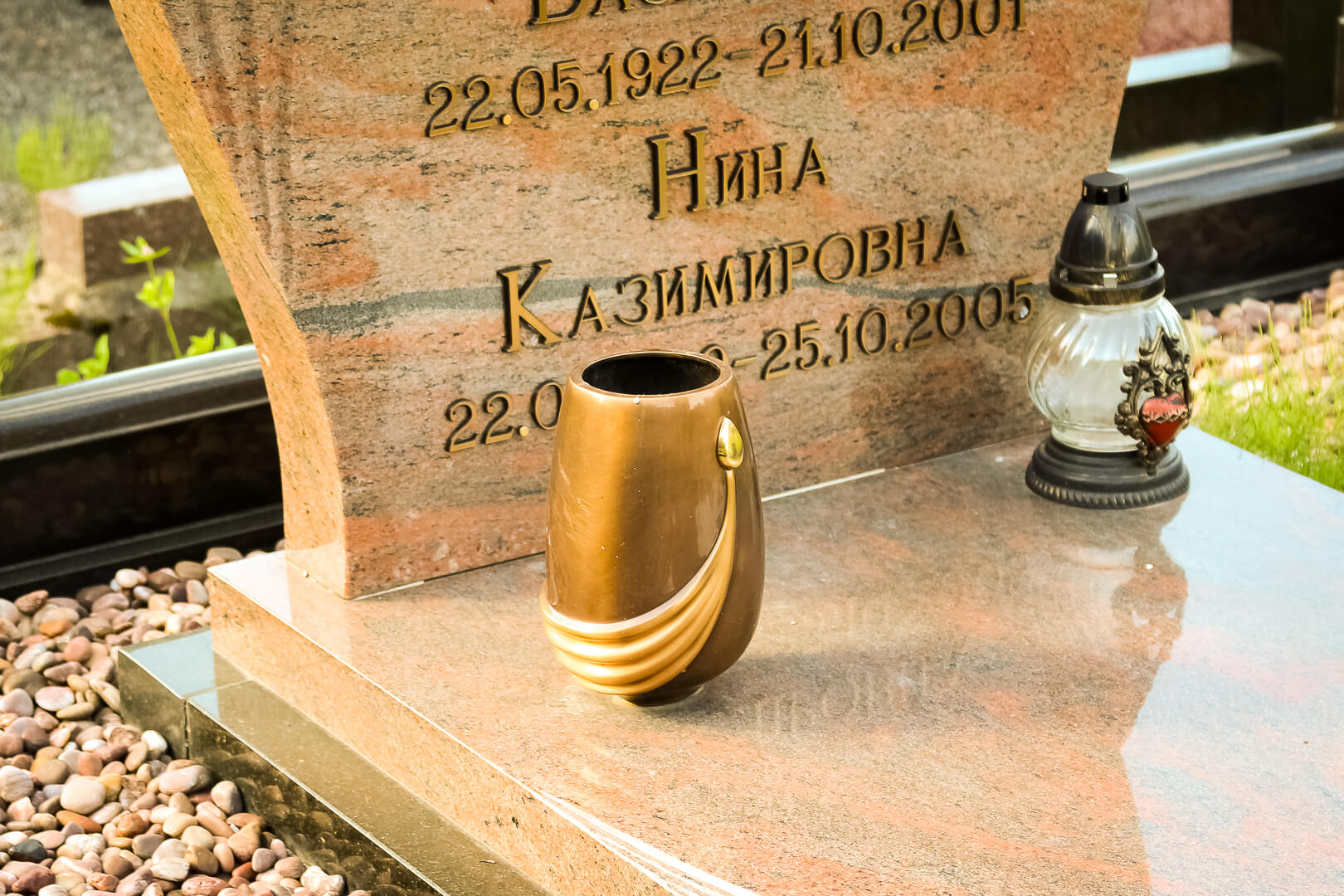 Бронзовая ваза является сегодня наиболее распространенным ритуальным украшением, одновременно выполняющим и утилитарную функцию по хранению принесенного на могилу букета. Ваза из бронзы сама по себе – привлекательный аксессуар, добавляющий стиль общей композиции ансамбля и «разбавляющий» монотонность камня блеском и изяществом формы.