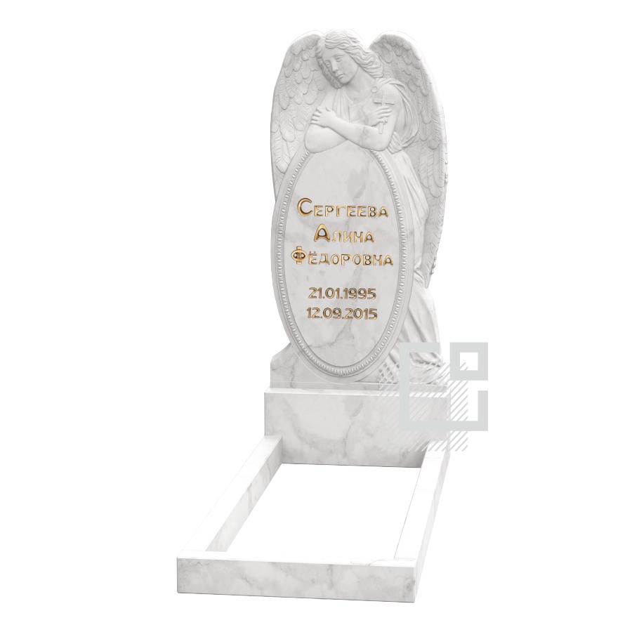 Изделие ПА-05 имеет стандартный размер стелы 120 × 60 × 8 см. Это типовой памятник в виде ангела, который включает в себя комплект из стелы, тумбы и цветника. При необходимости мы можем предложить другие размеры стелы, двойной цветник, а также надгробные плиты размером в ⅓, ⅔ или полноразмерную.
